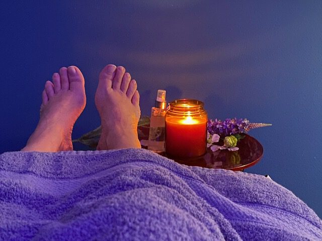 Een voetreflexmassage duurt ongeveer 30 – 40 minuten. We beginnen dan met een lekker warm voetbad en ondertussen nemen we wat gegevens en eventuele klachten door. Dan ga ik de voeten masseren. Tijdens een voetreflexmassage worden alle drukpunten nagelopen om te voelen of er blokkades zijn die opgeheven kunnen worden. We sluiten de sessie af met een glaasje water. Indien niet alle blokkades weg zijn kunnen we een vervolgafspraak maken.